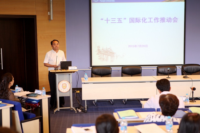 本站讯 (通讯员 仇爽)7月20日下午,“十三五”国际化工作推动会在会议楼召开。天津市教委国际交流处处长张健青,天津大学校长助理胡文平出席了大会,各学院、部处有关负责人、外事工作相关人员参加了会议。会议回顾总结了我校“十二五”期间国际化战略实施情况,深入探讨了国际化工作中遇到的瓶颈问题及解决方案。胡文平对学校国际化工作提出了具体的要求和意见,希望相关单位、各学院直面问题,共同推动学校国际化工作进程。