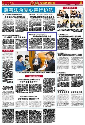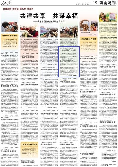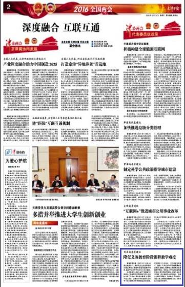 本站讯 (记者 张华)2016年的"全国两会"议程已经接近尾声,天津大学参加两会的代表、委员在会上持续发声,受到各类媒体的广泛关注。全国人大代表、天津大学校长李家俊在两会上关于高端工程技术人才培养的建议被《人民日报》转载,并就构建全球能源互联网、推动天津经济社会发展等话题在两会期间接受了《国家电网报》的采访,对《实施〈中华人民共和国促进科技成果转化法〉若干规定》的作用和现实操作问题在《科技日报》发表了看法,还就如何在全社会形成良好的捐赠文化接受了《今晚报》的采访。《天津日报》刊登了全国政协委员刘昌俊在两会上关于降低义务教育阶段课程教学难度的建议。《今晚报》刊登了全国政协委员张凤宝关于幼教师资队伍建设、袁希钢委员关于加强大学生创业教育的建议。