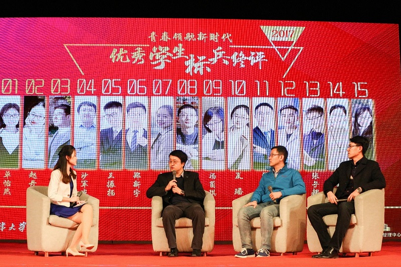 在访谈环节中,邀请到首届优秀学生标兵获奖者,精仪学院党委副书记张宇、2016年优秀学生标兵获奖者,现于天津大学自动化学院任教的李进和在国家开发银行天津分行就职的经管学部毕业生李伯阳到场。他们与在场所有观众分享了成长故事,结合个人经历讲述了求学、科研、社会工作过程中如何不畏艰难,追寻个人理想信念的历程。在终评现场,部分候选人还进行了舞蹈、诗朗诵才艺展示,充分展现了标兵候选人的青春风貌。