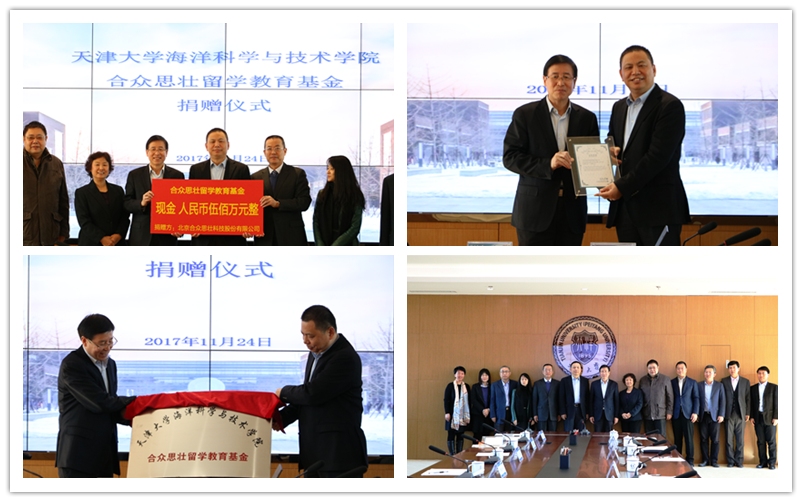 北京合众思壮科技股份有限公司(以下简称合众思壮)以“成为时空信息领域全球领先的高精度专业产品与服务提供商”,“北斗导航时空技术引领者”为愿景目标,总部设在北京,捐赠人民币500万元设立天津大学海洋学院合众思壮留学教育基金,用于支持该学院学生出国留学深造和留学生教育。冯亚青和王瑶代表双方签署了捐赠协议,李家俊代表学校接受捐赠并向合众思壮科技股份有限公司颁发捐资纪念牌和捐资证书,李家俊和郭信平共同为教育基金揭牌。