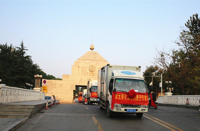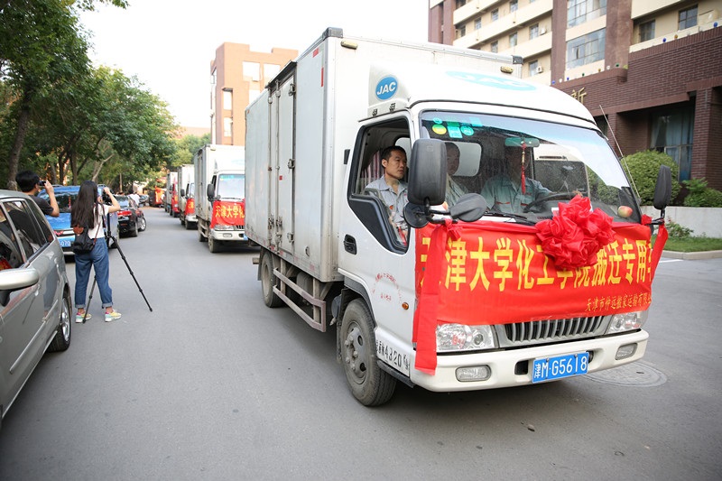 随后,刘建平书记宣布,天津大学化工学院搬迁新校区工作正式启动。6时40分,身披红花和”天津大学化工学院搬迁专用车“条幅的搬迁车队徐徐启动,在现场师生的欢呼和注视下,由益智道向东经过北洋广场,驶出庄严的东门,前往北洋园新校区。
