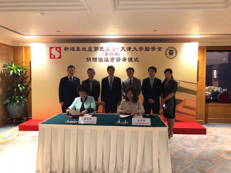 本站讯 (通讯员 许珊)3月23日,天津大学新鸿基地产郭氏励学金四期资助协议在港签署,新鸿基郭氏基金执行董事郭婉仪女士,新鸿基地产传讯部总监廖国伟先生,新鸿基郭氏基金总监李家华先生,天津大学校友总会会长刘建平,天津大学北洋教育发展基金会副理事长冯亚青,学工部、校友与基金事务处等部门负责人参加了捐赠仪式。