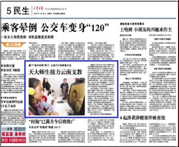 本报讯(记者 赵晖)天津大学管理与经济学部暑期实践队的师生们接力传承,将云南省洱源县凤羽镇作为长期调研和支教点。今年,天大师生还引入了公益力量,对接元明阳光教育奖励基金在当地的中小学设立了奖学金,并为凤羽镇源胜村的小学建成了一间留守儿童活动室,室内配有无线网络、台式电脑、平板电脑以及图书,以尽量拉平这些孩子面前的“数字鸿沟”。留守儿童可在这里的电脑上与外出打工的父母视频聊天,与天大的支教老师随时连线,天大的心理志愿者全年都可为这里的孩子提供远程辅导。