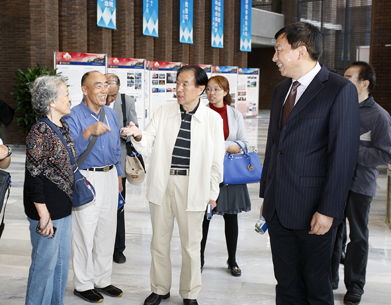 刘建平书记,安志忠校友,申志丰校友,姚振国校友为本次成就展揭幕,并在宣传部相关负责同志的陪同下,与师生、校友共同参观了成就展。