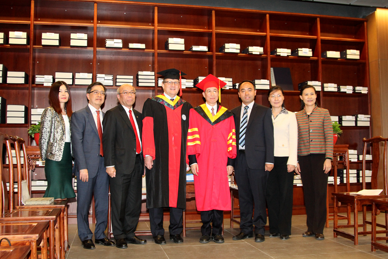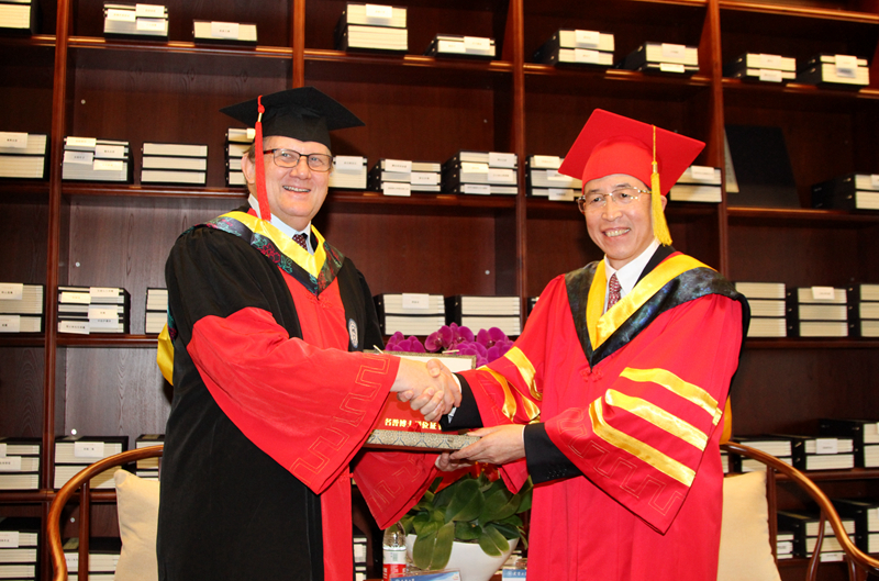 天津大学校长李家俊向新加坡南洋理工大学校长安博迪(Bertil Andersson)教授颁发了名誉博士学位证书