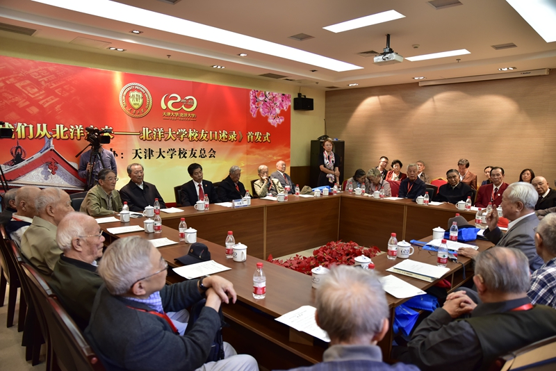 10月1日下午,新书首发式在校史博物馆会议室举行,校党委书记、校友总会会长刘建平向应邀回母校的北京、天津、山东、广西及校内30余位年逾耄耋的北洋校友代表赠书。校友总会副秘书长王葳主持会议。各学院部分学生代表参加仪式。