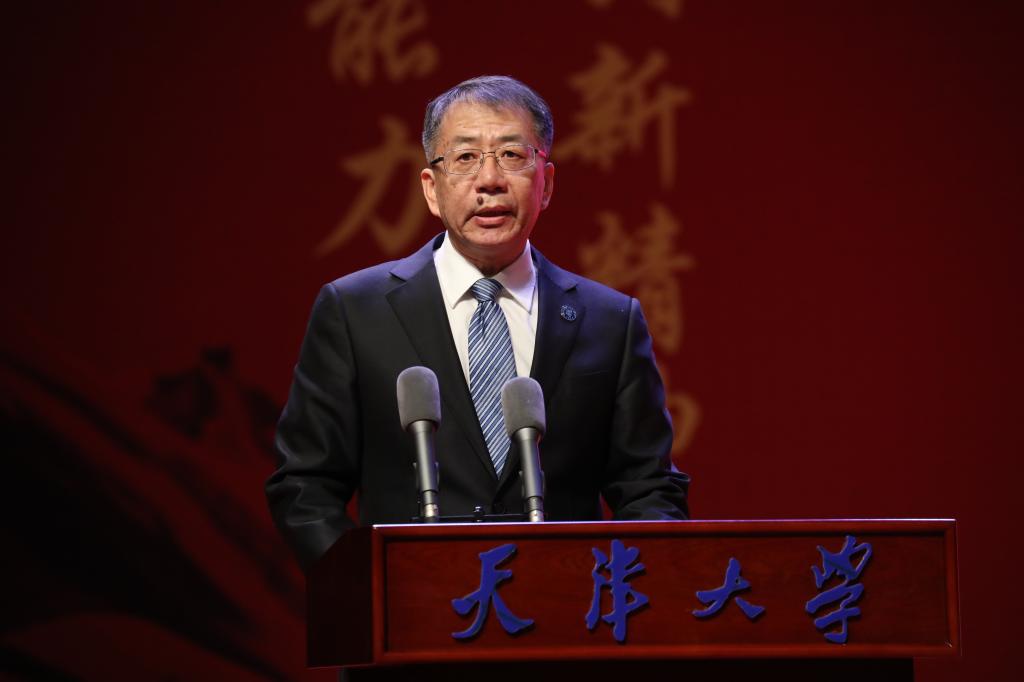 江南造船(集团)有限责任公司总经理助理郑金清代表捐赠企业和个人讲话。郑金清回顾了江南造船与天津大学深厚的历史渊源以及双方在人才、研发、技术上的多方合作,对学生发展提出三点建议:一是新时代的大学生要有强烈的责任感和使命感;二是新时代的大学生必须要做充满正能量的青年;三是同学们要强身健体,充满活力,好好学习。江南造船(集团)有限责任公司将继续加强与天津大学的合作,也希望更多天大优秀学子加入江南造船,携手共进。