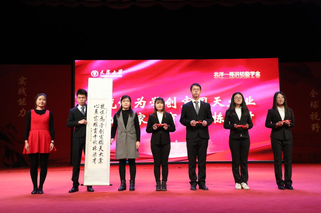 大会在庄严雄壮的国歌声中拉开帷幕。党办校办主任李武和国际教育学院党总支书记分李锵分别宣读了天津大学2017-2018学年优秀学生、先进集体表彰决定和优秀留学生表彰决定。马德刚介绍了2017-2018学年天津大学奖助学金评审工作开展情况。2018年,学生资助管理中心夯实规章制度,围绕立德树人优化奖项设置、修订管理办法、完善工作流程,提升资助科学化、规范化和精准化水平;通过奖助学金评审工作发布会、资助政策宣讲等,让学生充分了解各级各类奖助学金的设立情况,发挥奖助学金在人才培养中的激励作用和保障作用;构建“奖学金+”育人模式,注重评选后学生与捐赠单位 交流访问过程,同时以奖学金评比展示,“真人图书馆”、优秀学生上道旗、优秀学生事迹报告会等,奖励学金评选工作和优秀学生的榜样作用更加深入人心,育人效果显著。