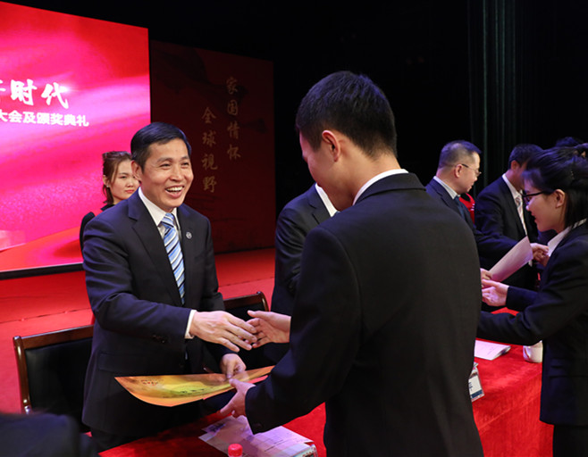 表彰大会上,校领导和捐赠方代表为获奖学生代表颁奖。此外,为了表达对捐赠企业和个人的感谢,资助育人工作室精心为每个设奖单位或个人准备一份书法作品作为纪念品。