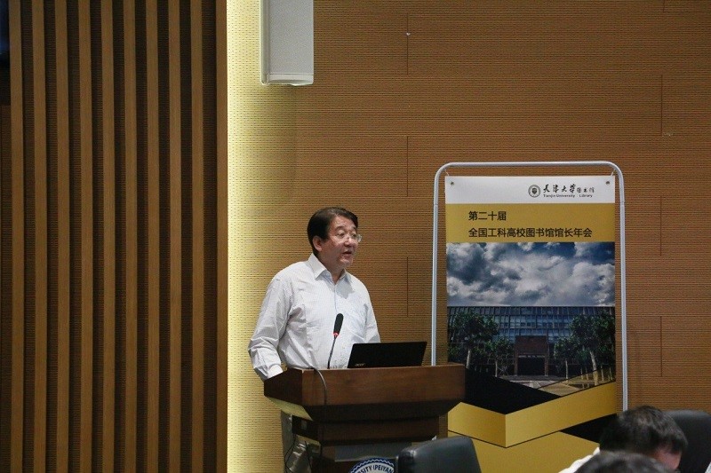 天津大学图书馆馆长张琪昌作了关于《大数据时代与新媒体环境带给图书馆的机遇与挑战》主题报告,在图书馆愿景与定位、空间重塑、服务创新等方面和与会领导进行分享。