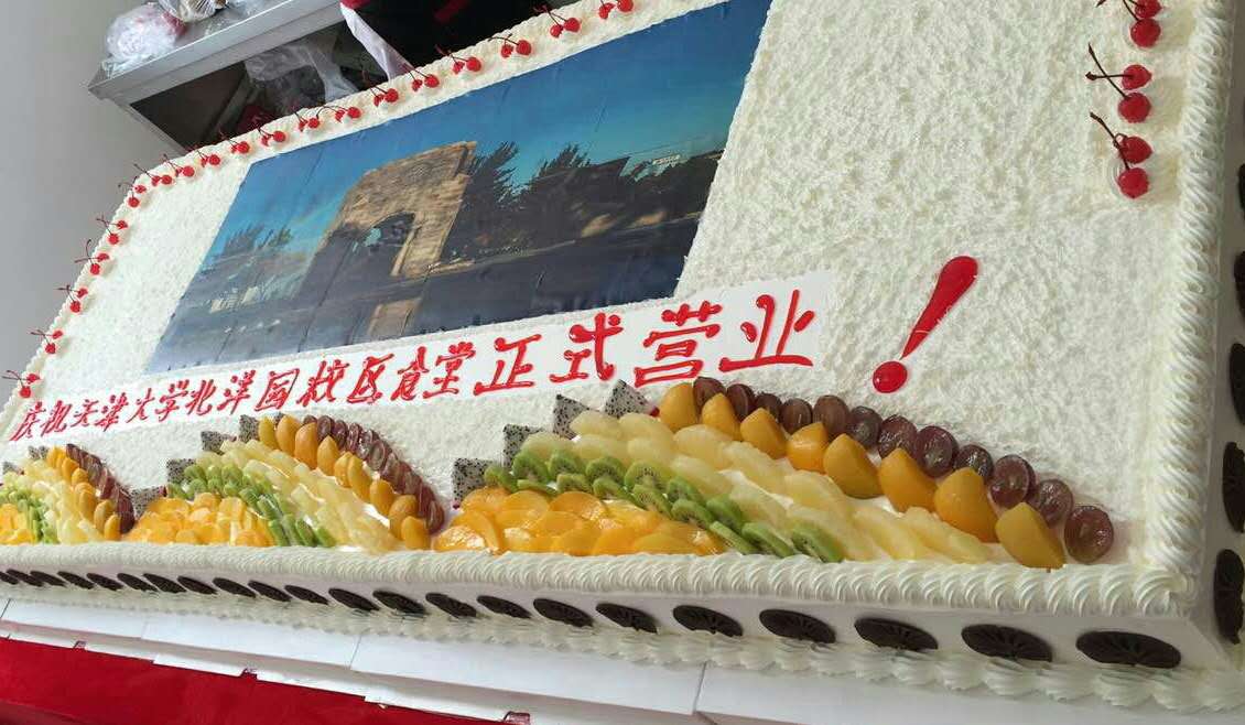 刘东志在讲话中就膳食工作提出了许多中肯而富有建设性的建议,充分体现了校领导对学校食堂的重视。随后,刘东志宣布北洋园校区食堂正式开业!在响亮的鞭炮声中,印有天津大学地标性建筑北洋大学堂图案的巨型蛋糕从学一食堂缓缓推出,三百余名师生在梅园餐厅免费领取到了香甜可口的蛋糕,一起分享新校区食堂开业的喜悦。