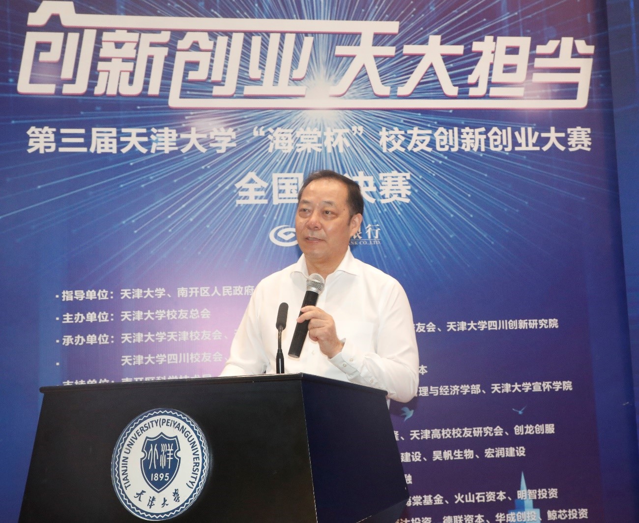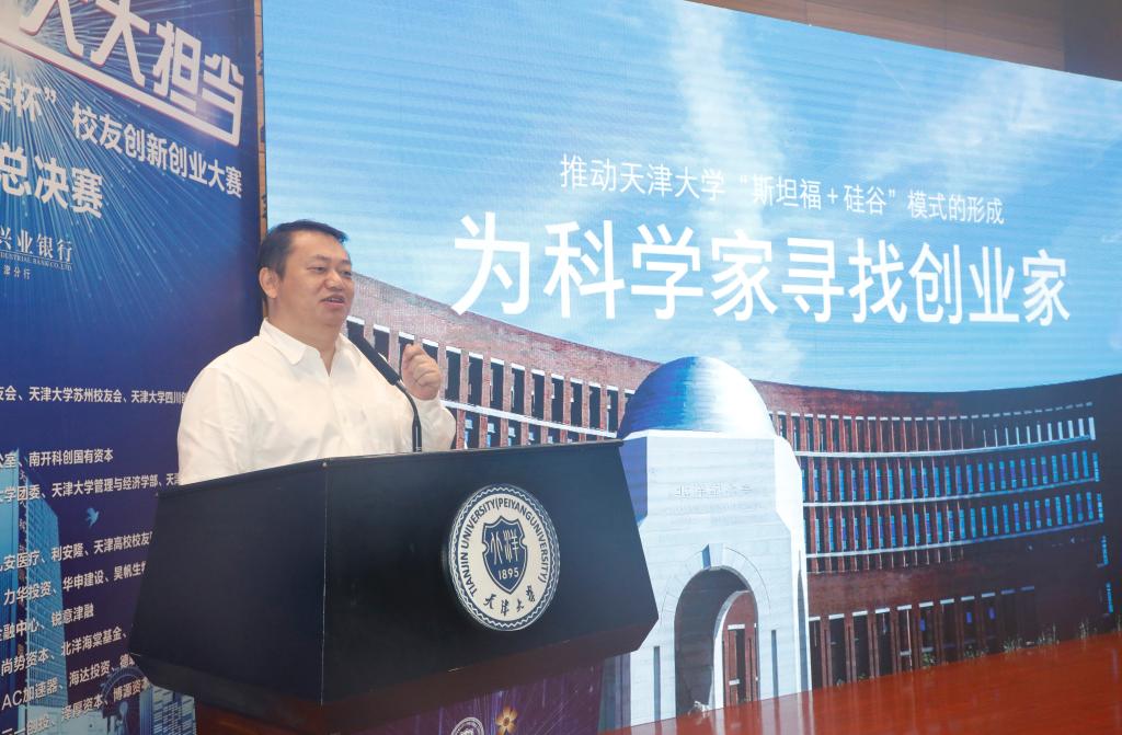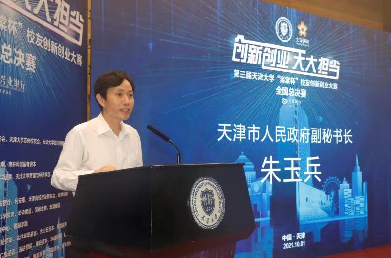 朱玉兵在致辞中说,近年来,天津市委、市政府深入贯彻落实习近平总书记关于“创新创业”的重要指示精神,大力实施创新驱动发展战略。高校是培养创新创业人才的重要平台,为此,市政府今年出台了加快推进大学科技园建设的指导意见,高标准推动大学科技园建设,使其成为高校成果转化“首站”、区域创新创业“核心孵化园”和新兴产业“策源地”,为天津高质量发展提供动力和支撑。此次大赛项目不仅与天津市重点行业发展相契合,也凝聚着广大校友服务天津产业需要的科技梦想,对天津打造优秀项目投融资平台,推动优秀硬科技项目落户天津有着重要意义。