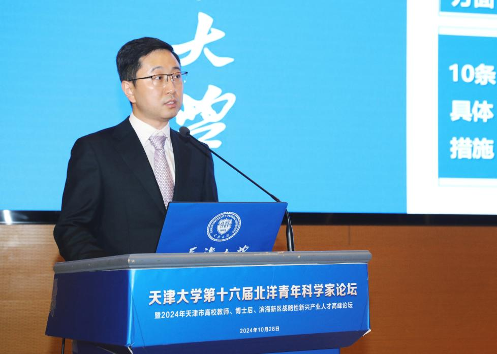 李涛代表天津市人社局对海内外青年学者表示诚挚的欢迎。他指出,天津市委、市政府高度重视人才工作,坚持“天下才天津用”的理念,认真贯彻落实党的二十届三中全会精神,大力引进培养各类英才,为各类人才实现梦想构筑创新之城、创业之地。他从博士后等高层次人才领域方面、留学工作人员创业方面、人才培养方面、人才服务方面等四个方面介绍了天津市人才政策。他表示,天津大学已经成为青年人才成长的沃土,成为天津发展的重要动力源泉,新时代的天津与时代同行,与国家共进,与未来携手,诚邀各路青年英才来天津发展,大显身手、大展宏图。