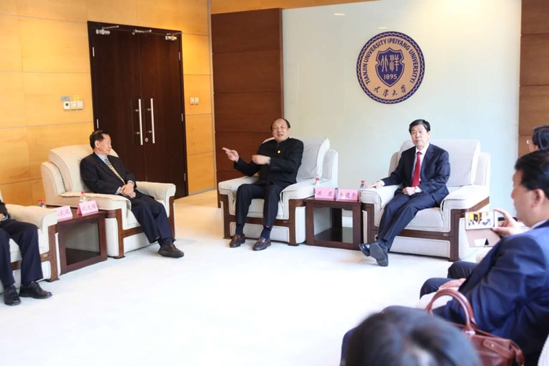 天津大学党委书记刘建平对嘉宾的到访表示欢迎,向客人介绍了天津大学的发展历程。会面过程中,洪虎会长和朱光耀会长对天津大学的热情接待表示感谢,同时祝贺天津大学建校120周年,感谢这百年之中天津大学为各行各业培养的优秀人才以及对社会各界作出的贡献,最后对环境产业领军班的成立表示肯定,希望通过本次搭建的产学研平台引领中国环境企业快速发展,将生态文明建设推向高峰,进一步推动中国职业经理人协会,生态文明研究与促进会与环境学院的进一步合作,促进天津大学环境学科的发展。