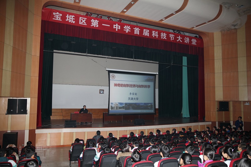 本站讯(通讯员 许晶)12月9日下午,天津大学校长李家俊一行赴天津宝坻一中为该校1000余名高中生做了题为“神奇的材料世界与材料科学”的主题科普讲座。宝坻区副区长芮永玲、区委书记助理王浩、教育局局长王长彬等参加了报告会。