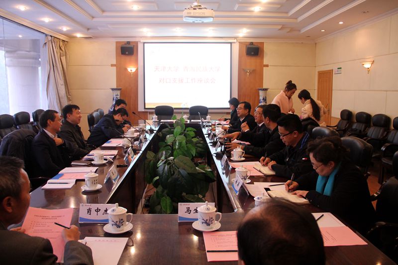座谈会在青海民族大学行政楼举行。马维胜在座谈会上就2015年天津大学与青海民族大学对口支援工作的情况做了汇报。在师资培训与干部挂职方面,2015年度青海民族大学8名教师被天津大学以博士单列计划录取攻读博士研究生,双方同时确定了2016年度博士单列计划指标7个,已上报教育部审批,并有9名教师和3名处级干部赴天大进修和挂职。在专业建设方面,天大建工学院协助青海民族大学建工学院制定培养方案,并参与新入职教师试讲考核,毕业论文答辩,专业论文写作知识讲座等;7月15日至30日,天大建工学院2名带队教师、40名学生与青海民族大学建工学院19名学生一同到羊曲水电站实习;天大化工学院协助青海民族大学化工学院化学工程与工艺专业在培养方案的制定、课程和培养环节的设计。在博士生培养方面,教育部下达给两校联合培养博士研究生的招生计划为4名,经协调天大从总计划中调剂2名计划用于联合培养博士研究生,总计划6名;双方联合印制了《天津大学与青海民族大学联合培养博士研究生工作手册》;在2015年博士生招生期间,天大派出7名专家参与青海民族大学相关工作;青海民族大学研究生部率8名博士生来到天大参加入学教育、参观校史馆、授课等活动;6月份,两校导师组共同对5名2014级博士研究生开展了预开题及开题报告会。