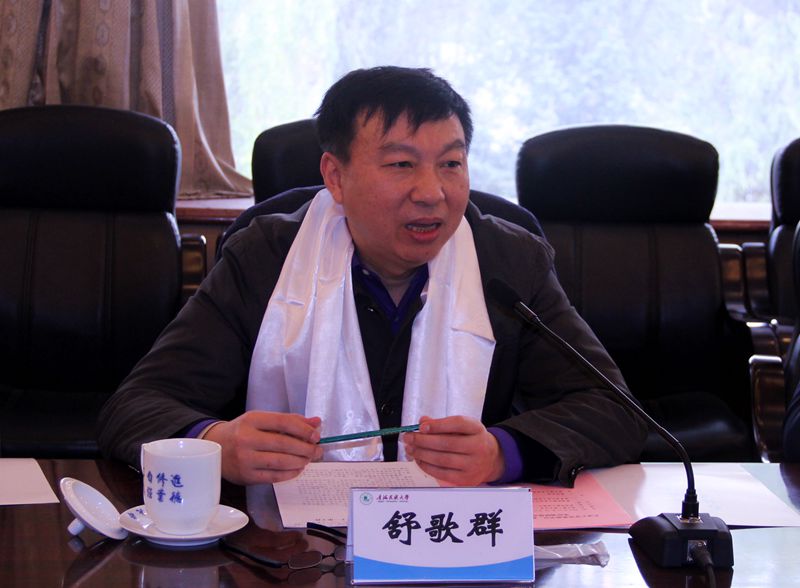 本站讯(记者 摄影 王涛)11月10日上午,天津大学党委副书记、副校长舒歌群一行5人访问青海民族大学,参加天津大学——青海民族大学对口支援座谈会,交流总结2015年天津大学与青海民族大学的对口支援工作进展情况,并就进一步提升对口支援成效、拓宽双方合作领域进行了深入探讨。青海民族大学党委书记赵燕武、校长何峰、副校长索端智、副校长马维胜、副校长王刚会见了舒歌群一行,并由何峰主持举行了座谈会。天津大学党办校办、人事处、信息学院、宣传部相关负责人及工作人员参加了座谈。