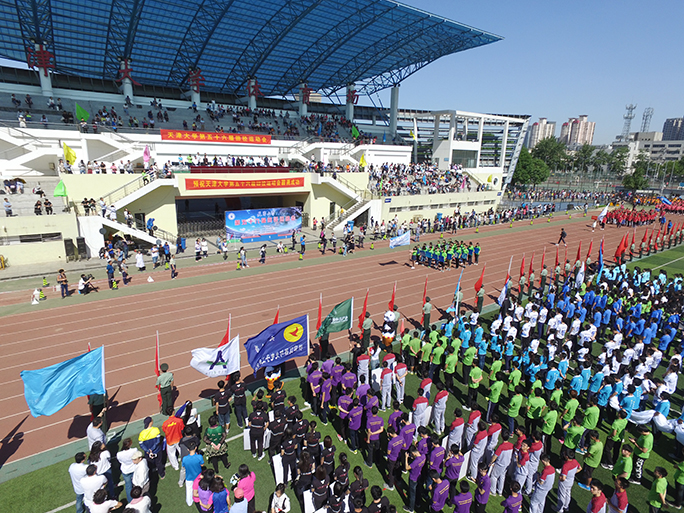 伴随着铿锵有力的《运动员进行曲》,各学院及各单位代表队踏着整齐的步伐进入运动场。穿着鲜艳统一的服装,喊着激昂嘹亮的口号,他们意气风发,彰显了天大学子与教职员工对运动的热情,使运动场充满激情与活力。