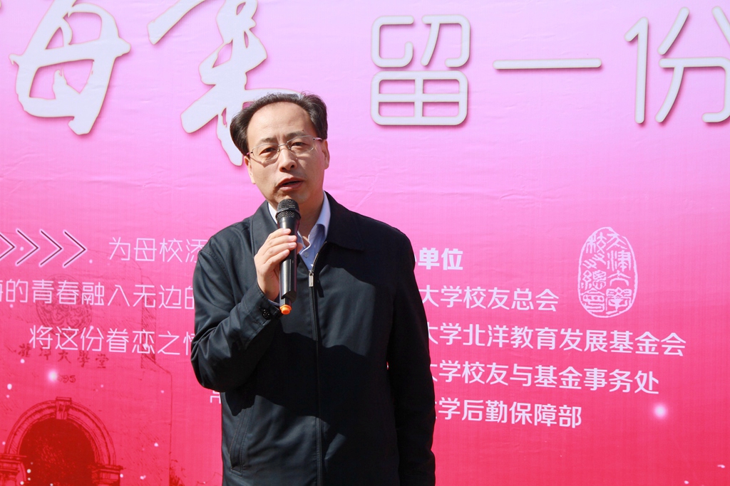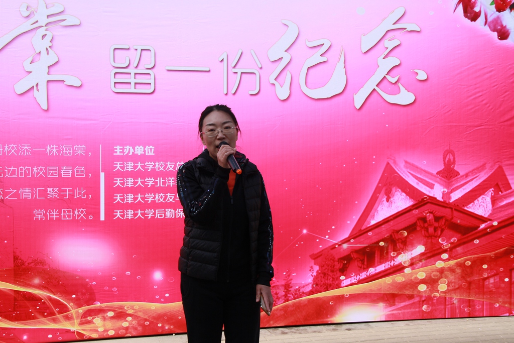 潘峰表示海棠如今已成为了天津大学的文化标志之一,寓意巍巍学府光彩华丽的未来,承载四海校友对母校眷恋与思念。学校的校友和基金工作坚持以“有情怀、有文化、有温度”的工作理念,提升校友服务质量,深耕校友文化培育,后续我们将会举行更多校友活动,欢迎校友经常“回家”。