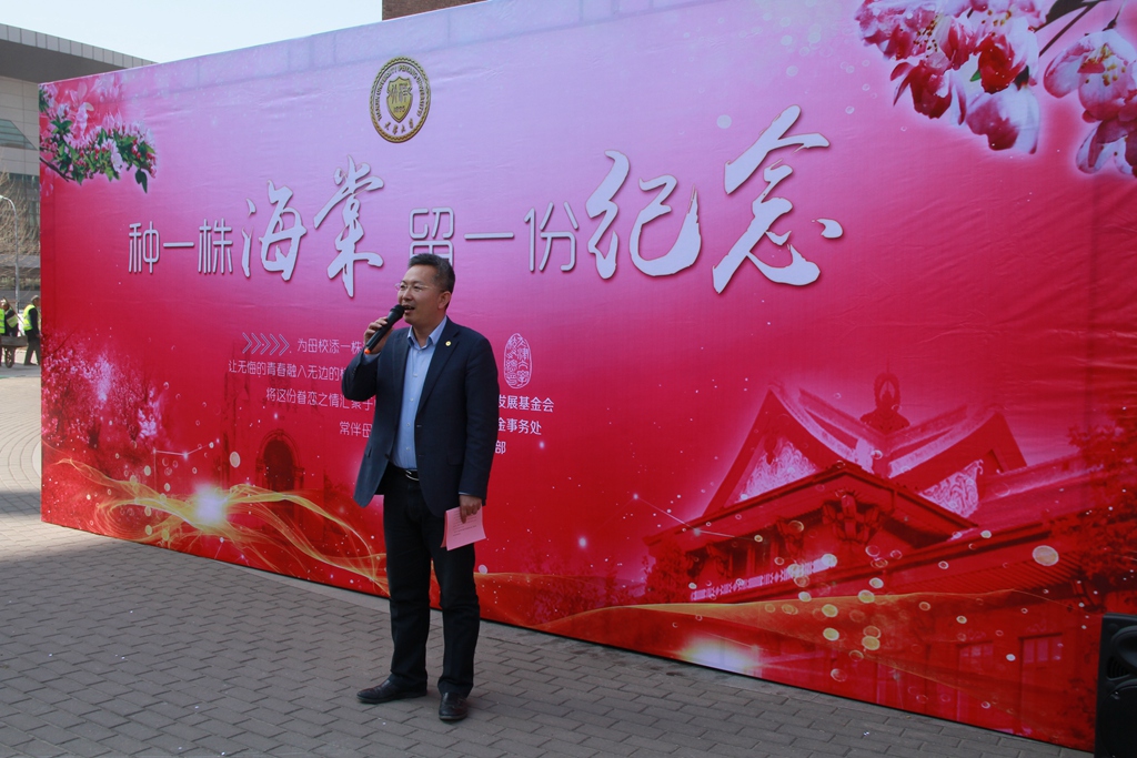 本站讯(通讯员 宋畅)3月16日,正逢中国植树节设立40周年,天津大学卫津路校区举行校友海棠林落成仪式。天津大学副校长王树新出席活动并讲话,活动由校友与基金事务处处长、校友总会秘书长潘峰主持。校友、在校学生和教职工代表近百人聚集于卫津路校区26楼东侧,共同参与此次活动。