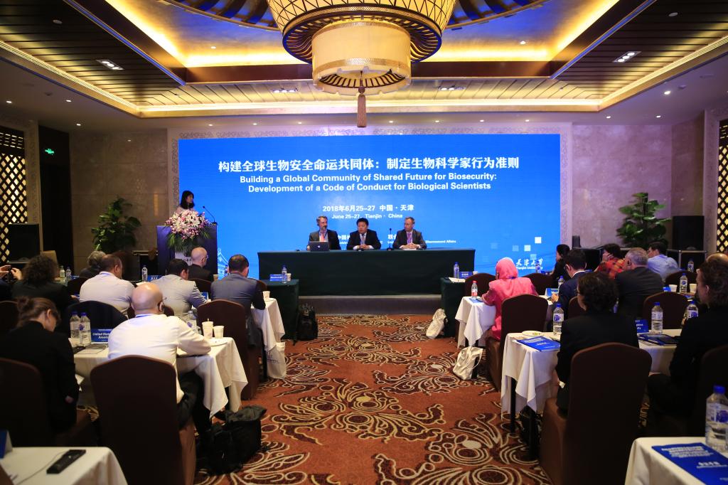 本站讯(记者赵晖)6月27日,“构建全球生物安全命运共同体:制定生物科学家行为准则”国际研讨会在天津圆满落下帷幕。《禁止生物武器公约》缔约国会议主席格奥尔京斯基由衷感谢中国政府和天津大学的出色组织,在国际上倡导“生物科学家行为准则范本”这一重要倡议。他对本次会议给与了高度评价,“通过两天的会议,在准备离开天津时,我完全相信这里发生着非常有意义的事,那就是构建全球生物安全命运共同体的努力正在天津迈出了重要的一步”,他说中国在《禁止生物武器公约》框架下提出的“生物科学家行为准则”可以称之为“天津-生物科学家行为准则”。