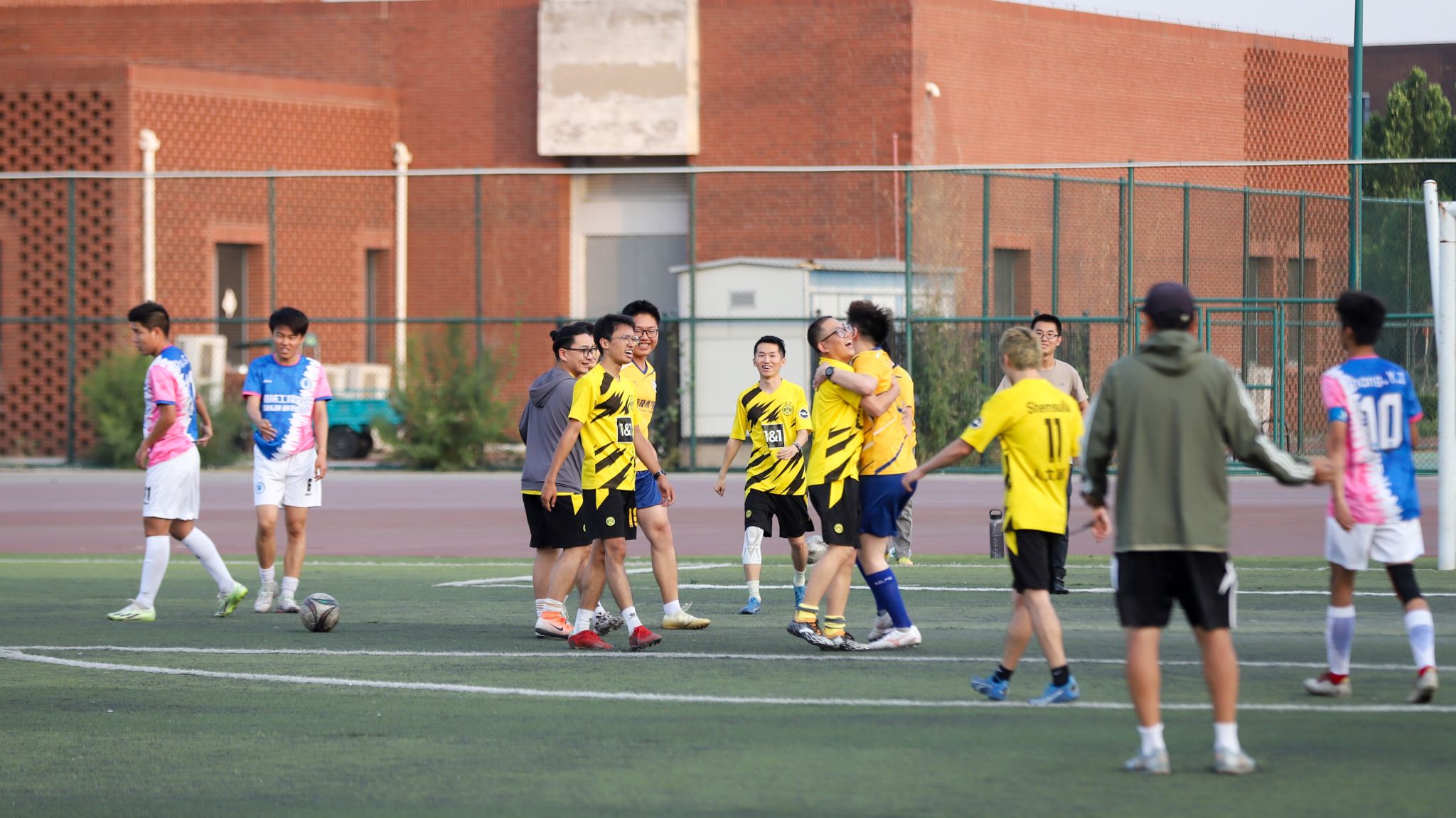 求是文教联队赛后庆祝胜利