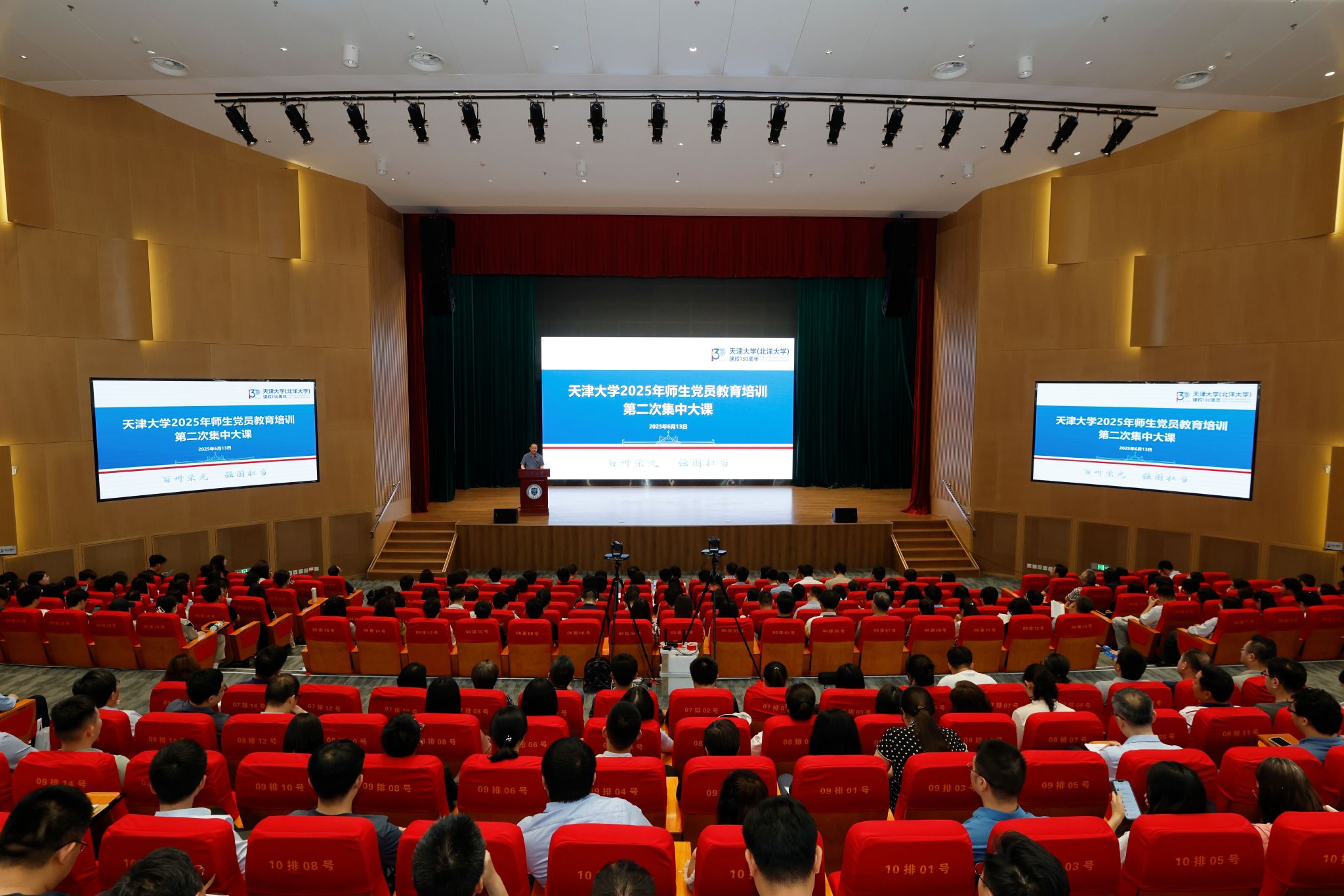 本站讯(教师培训中心供稿)为深入学习贯彻习近平新时代中国特色社会主义思想,引导全校师生党员以理论学习筑牢政治忠诚、以使命担当锤炼攻坚本领,6月13日,天津大学举办2025年师生党员教育培训集中大课,组织观看由教育部党组书记、部长怀进鹏主讲的《深入学习贯彻习近平总书记关于教育的重要论述,落实全国教育大会精神》视频报告。全校1.5万余名师生党员在115个会场,以线上线下相结合的形式参加学习。教育部思政司党建统战处、天津市委教育工委市教委组织处有关负责同志到会指导。校党委书记杨贤金主持集中大课。