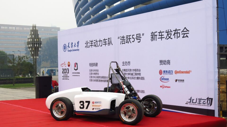 “这辆车真的能跑起来吗?”“真的是你们自己造了一辆车吗”一年一度的“百团大战”现场,一辆赛车引来了“围观”,这些不经意之间发问的答案是肯定的。他们是FSC系列赛事创始车队之一,他们聚集了一群热爱赛车的年轻人,一起造赛车、开赛车,是同学里眼里“最酷”的人。他们就是,天津大学北洋动力车队,在天大上演着“速度与激情”。不仅如此,每年造一辆赛车也成为了一门深受学生喜爱的“金课”。这辆名为浩跃ⅩⅢ的赛车已经是天津大学学生自主设计制造的第13辆燃油方程式赛车了。
