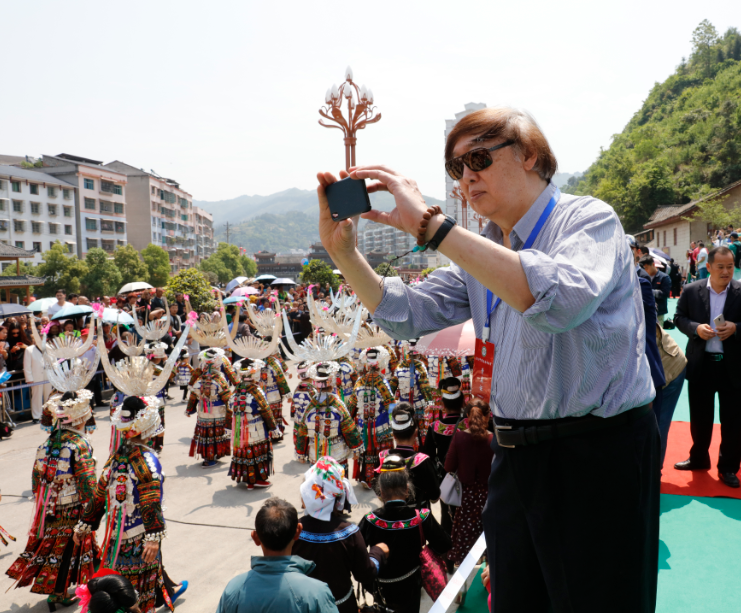 在参加研讨会前,冯骥才刚刚体验了他神往已久的苗族姊妹节,观看了台江苗族各支系的姊妹节盛装游。他用作家的文学语言来形容自己的感受:“人们都说幻想比现实美丽,但台江姐妹节是比幻想更美丽的现实。”冯骥才坦言,在看盛装游之前,他很怕自己看到的会是一个为旅游而展示的服装秀,令他惊喜的是,他在这样一个政府倡导的活动中,看到的是苗族人尽情欢度自己的传统节日,看到的是民族文化的发展和弘扬。有一个细节特别让他感动,在游行结束后,随着人群缓步离场时,他看到两个五六岁的孩子,穿着民族盛装,骄傲地让游客拍照,这么小的孩子已经开始为本民族的传统文化而感到自豪。“传统文化真正的传承在人的心里,在人的记忆里,这才是一个民族真正深刻的精神的传承。”