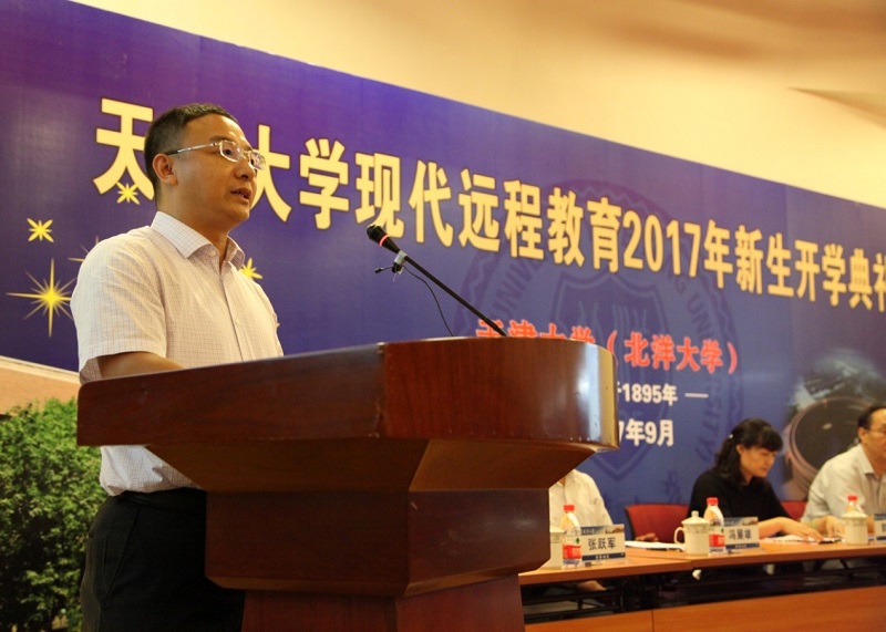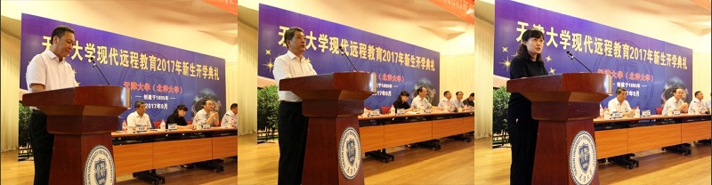 企业代表张跃军、行业协会代表冯展雄、政府职能部门代表郭洁分别在开学典礼上致辞,他们对于天津大学网络教育学院积极构建终身教育体系,开展校政企合作办学,助力区域经济及行业企业发展表示了热情的肯定和赞赏,对2017秋季新生同学表示真挚的祝贺,殷切希望同学们都能珍惜学习机会,奋勇拼搏,学有所获,为行业企业及国家的发展做出更大贡献。
