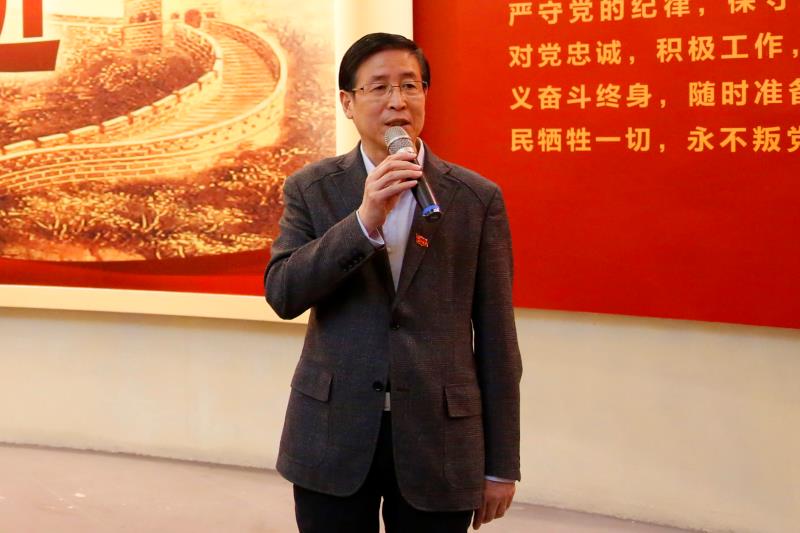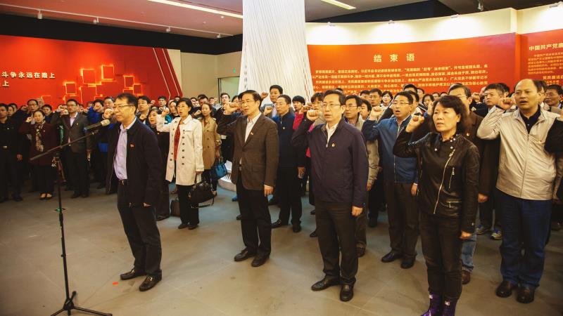 参观结束前,大家面对党旗肃立,举起右拳,集体重温入党誓词。校党委书记李家俊主持宣誓并讲话,校党委副书记、纪委书记孙广平领誓。李家俊在讲话中指出,通过参观大家接受了一次集中深刻的廉政教育,他强调全面从严治党永远在路上,利剑永远高悬,党员领导干部要警钟长鸣,洁身自好,牢固树立“四个意识”,时刻保持对纪律和规矩的敬畏,带头守纪律、讲规矩,严格要求自己,发挥表率作用;要切实担负好肩负的管党治党责任,对本单位的政治生态负责,严格要求本单位同志,共同努力营造健康良好的政治生态。