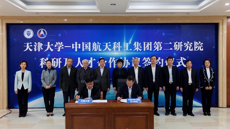 会上,朱弘、元英进代表双方签署“科研及人才合作协议”。姚建铨院士与李陟共同为“姚建铨院士二院工作室”揭牌。航天科工二院人力资源部部长严荣祥与天津大学就业指导中心主任肖述虎为“天大-二院”校企俱乐部揭牌。