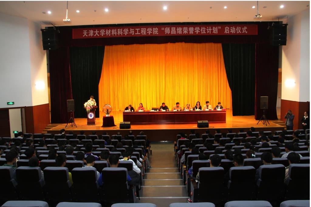 本站讯(通讯员 王颖)10月20日10点,天津大学材料科学与工程学院的“师昌绪荣誉学位计划”启动仪式在天津大学北洋园校区学生中心一层报告厅隆重举行。出席启动仪式的领导和嘉宾有:校党委副书记李义丹、师昌绪先生夫人郭蕴宜老师、中科院理化所师昌绪学生代表李来风教授、材料学院院长胡文彬、国家级教学名师赵乃勤教授、教务处副处长靳楠、副院长原续波、党委副书记王莹,14位导师代表与入选计划的39名学生在前排就座,学院2015级本科生全体参加了启动仪式。仪式由学院党委书记刘秀国主持。
