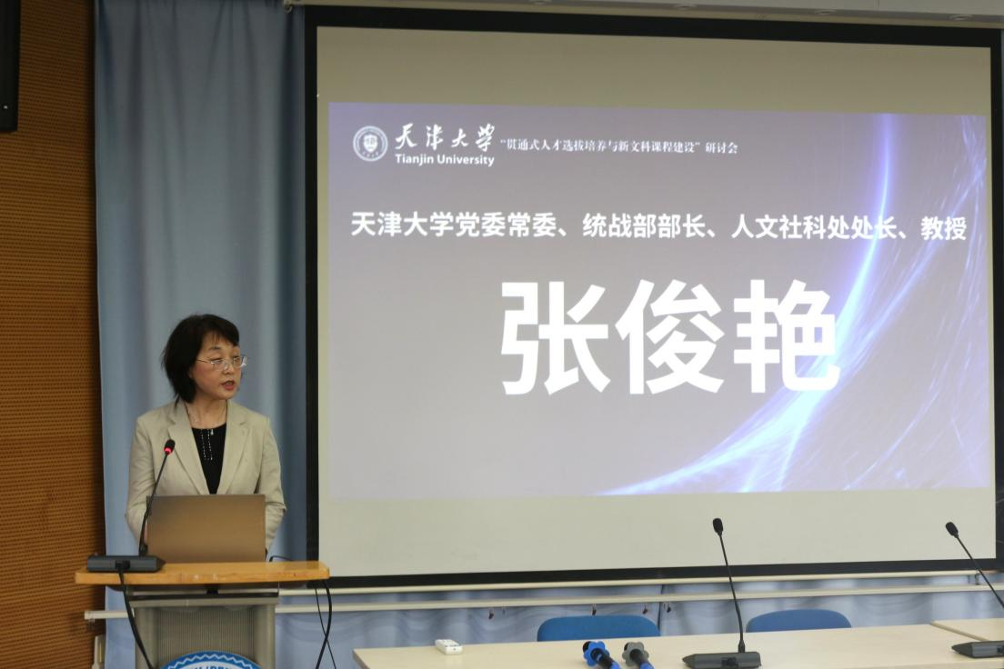 开幕式上,天津大学党委常委、统战部部长、人文社科处处长张俊艳教授代表天津大学,对各位嘉宾及参会代表的到来表示热烈欢迎与诚挚感谢。她表示,贯通式人才培养是以培养创新人才为目标,基于学科特色,系统设计学科方向与专业学习相适应的本研一体化贯通培养体系。高校作为人才培养的主要阵地,肩负着为党育人,为国育才的重要使命。希望本次研讨能够成为各位同仁交流思想,分享经验,共谋发展的平台,共同探索人才选拔培养的新路径,推动新文科课程建设的创新发展,为培养更多适应时代需求的高素质文科人才,贡献智慧和力量。