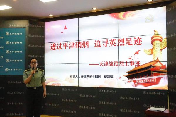 近日,天津大学附属中学结合文明校园创建工作,开展了主题宣传教育活动。9月5日下午,学校联合天津市烈士陵园红色宣讲团开展“与信仰同行,为青春导航”开学第一课活动,学校高一年级师生200余人参加了本次活动。活动中,天津市烈士陵园红色宣讲员纪婷婷、阎驰分别讲述了《透过平津硝烟 追寻英烈足迹》、《抗日英雄—吉鸿昌》,播放全市英烈讲解员大赛获奖作品《侦查铁汉——付平山》、《独胆英雄—陈树棠》,并发放宣传材料。一幅幅珍贵的历史照片,让大家更深切地感受到了英烈们不怕牺牲、前赴后继、英勇战斗的爱国主义精神。活动结束后,同学们纷纷表示,英烈们的故事让他们深受鼓舞,也让他们知道了今天的美好生活来之不易,一定要倍加珍惜。本次活动也是思政课的有效延伸,开展好红色教育和爱国主义教育,更好地培养有爱国主义思想感情和历史使命感的当代中学生,号召广大青年学子“当好英烈传人”,使新时代青少年永葆红色基因,帮助学生坚定文化自信,坚定理想信念,培育德智体美劳全面发展的社会主义建设者和接班人。