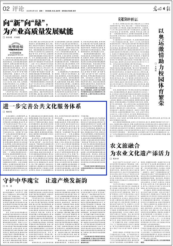 党的十八大以来,我国坚持以文化人、以文惠民,精准匹配文化供给内容和供给方式,不断促进基本公共文化服务标准化均等化。公共文化服务保障法、公共图书馆法颁布实施,中办、国办印发《关于加快构建现代公共文化服务体系的意见》《国家基本公共文化服务指导标准(2015—2020年)》等,推动我国公共文化服务体系建设取得显著进展。《中共中央关于进一步全面深化改革、推进中国式现代化的决定》(以下简称《决定》)提出,完善公共文化服务体系,建立优质文化资源直达基层机制,健全社会力量参与公共文化服务机制,推进公共文化设施所有权和使用权分置改革。这体现了补短板、强弱项、提质量的改革思路,旨在以高质量文化供给增强人们的文化获得感、幸福感。