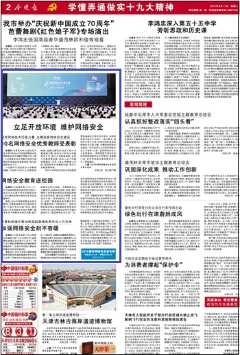 本报讯(记者 雷风雨)今天上午,2019年国家网络安全宣传周“校园日”启动仪式在天津大学北洋园校区举行,标志着网安周天津地区系列活动相继展开。