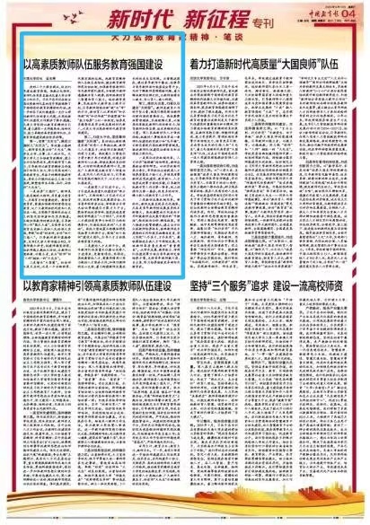 党的二十大报告提出,到2035年建成教育强国。强教必先强师,教师队伍素质直接决定着大学办学能力和水平。习近平总书记在致全国优秀教师代表的信中深刻阐释了中国特有的教育家精神的内涵,进一步回答了我们要建设一支什么样的教师队伍的重大问题,为高校教师队伍建设工作提供了根本遵循。天津大学坚持以教育家精神为引领,着力建设一支师德高尚、结构优化、能力卓越的高素质教师队伍,为教育强国建设提供坚实保障。