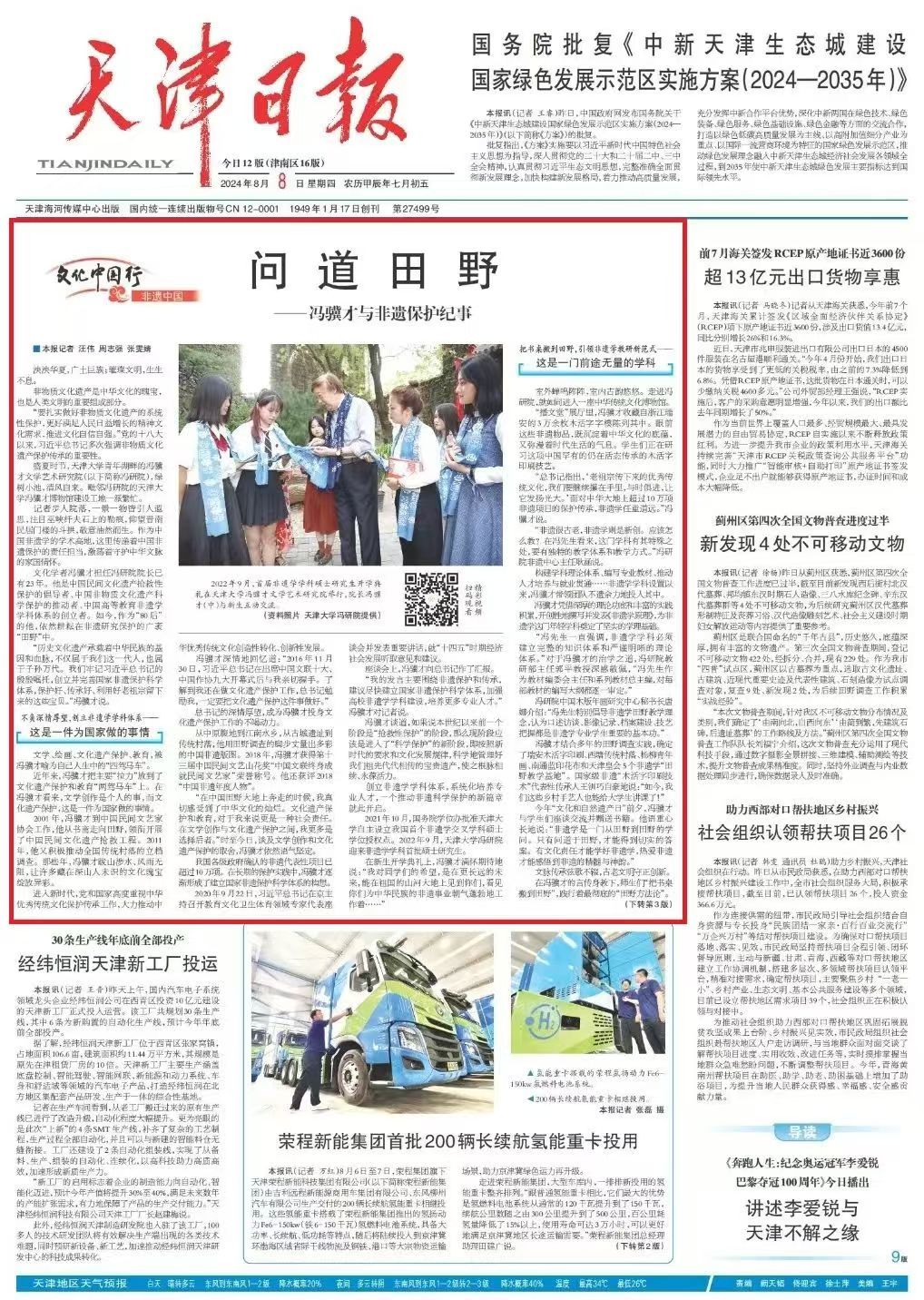 原文链接:天津日报头版:文化中国行│问道田野——冯骥才与非遗保护纪事
