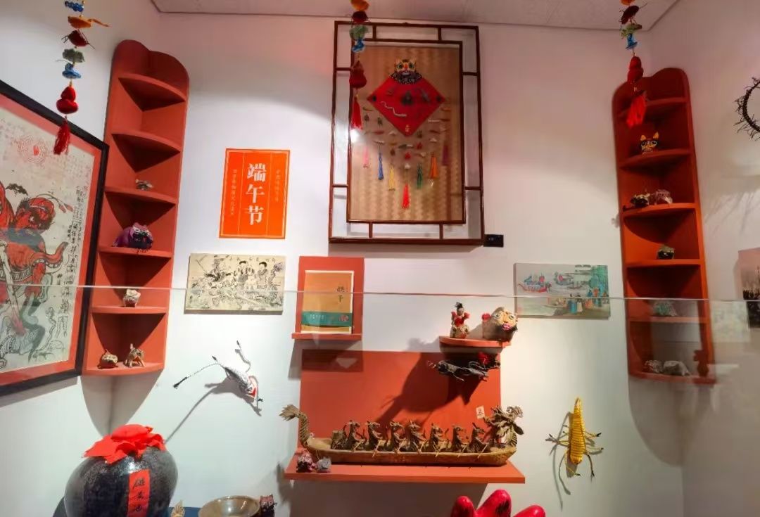 天津大学冯研院花样生活展厅内,展出了全国各地各具特色的民间文化艺术品。