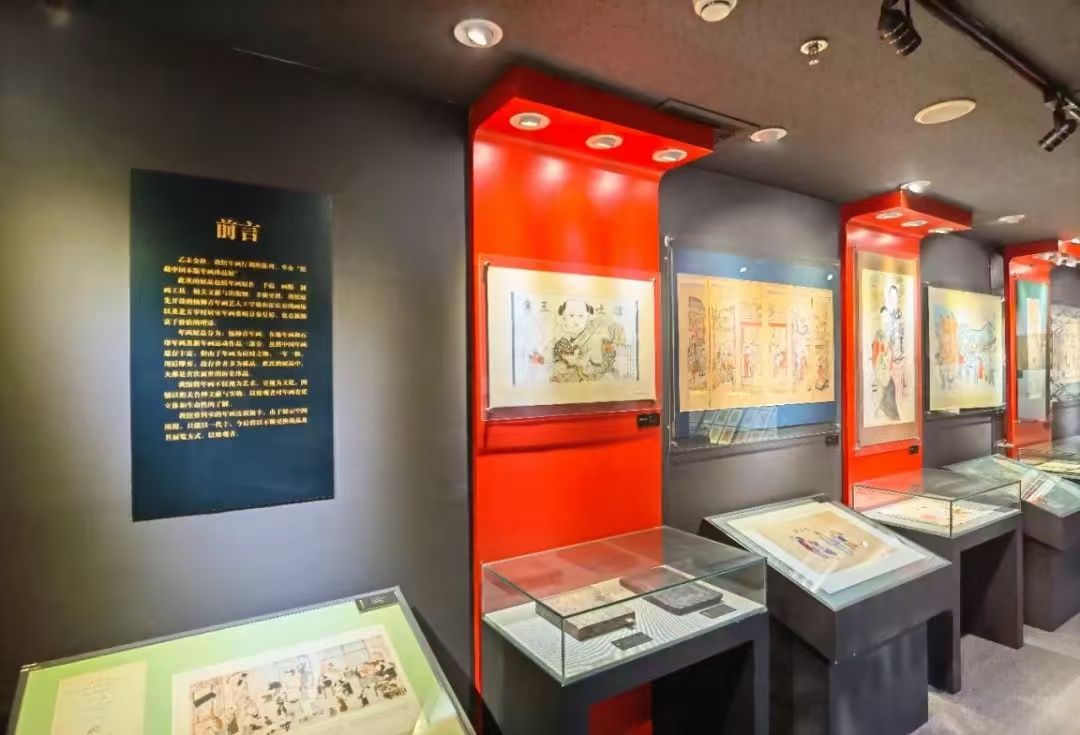 天津大学冯研院年画展厅内,展出了杨柳青年画原作、手稿、画版等展品及相关文献。