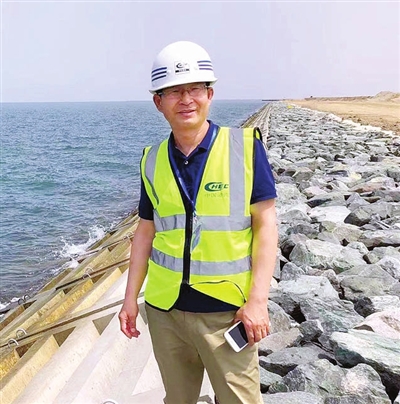 张水波教授在沙特“一带一路”吉赞海港项目调研。 天津大学供图