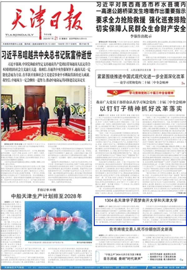 天津日报:http://epaper.tianjinwe.com/tjrb/html/2024-07/21/content_143078_1069661.htm