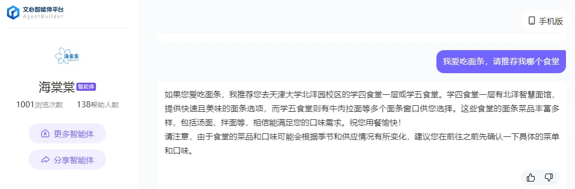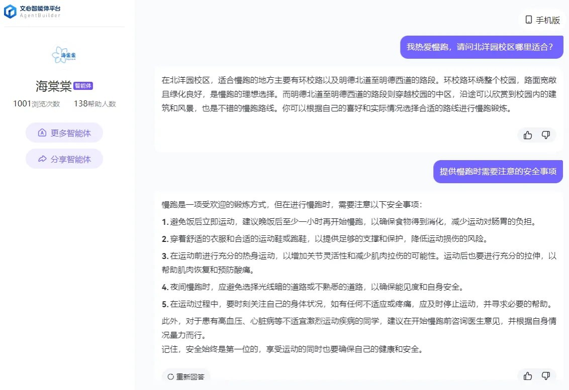“我该选哪些课?”“想保研怎样攒绩点?”“校园有哪些社团值得加入?”“校园卡充值流程是怎样的?”……为及时解答新生入学的各种疑问,天津大学近日推出了一个实时在线的“热心学长”,24小时解答新生在学术科研、校园生活、个人发展等方面的各类常见问题。这就是“AI学长”——新生智能体“海棠棠”。