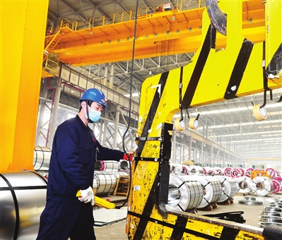 在新宇彩板彩涂板生产车间,总经理杜宝新指着眼前绯红色的板材说:“那是出口以色列的,这批1万吨的出口订单生产快收尾了,马上就装船交货。我们的产品30%用于出口,远销海外60多个国家和地区。元旦刚过,企业就与来自全国的经销商签订了彩涂板的意向合同,合同量超过了200万吨,比2022年增加了10%。”
