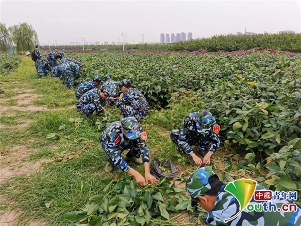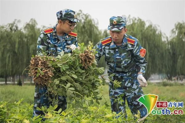 中国青年网北京8月22日电(记者 李华锡 实习生 蒋宇骏)大学生吃上自己亲手种的粮食是一种怎样的体验?最近,天津大学新校区西边地里种的花生、毛豆和玉米成熟了,100多名身着军训服的大学生走进地里、弯下腰来,在10亩种植地中收获着自己这数月来辛勤耕耘的成果。