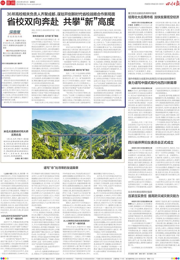 ●合作结出的硕果不仅为治蜀兴川注入强大创新动力,更提供了源源不断的智力支撑
