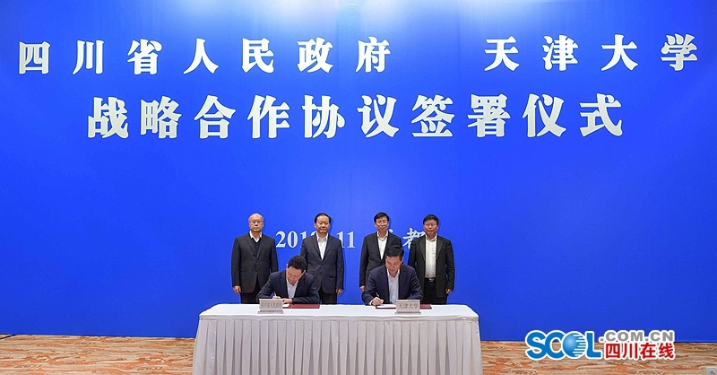 签署仪式上,省委常委、组织部部长王正谱介绍四川实施人才强省战略、推进与天津大学校地合作有关情况;李家俊介绍天津大学建设发展情况,就共同落实好战略合作协议提出意见建议。副省长杨兴平与钟登华分别代表双方签署战略合作协议。彭清华、李家俊见证协议签署。