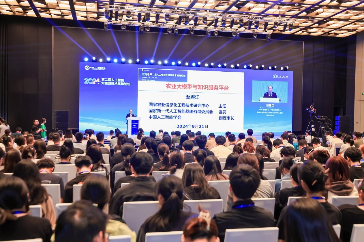 主论坛报告环节,CAAI副理事长、中国工程院院士赵春江,百度首席技术官王海峰,腾讯首席科学家张正友,中国科学院自动化研究所研究员宗成庆分别作学术报告,围绕大模型的基础研究、技术前沿、产业态势进行探讨,为未来的跨学科研究和各行业落地应用提供新思维。