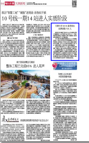 新报讯(记者 郝颖)天津大学2018年在津招生录取工作圆满收官,725名天津学子成为“新天大人”。天津大学始终是在津招生计划数最多、增补计划数最多、实际录取学生数最多的“双一流”建设高校。